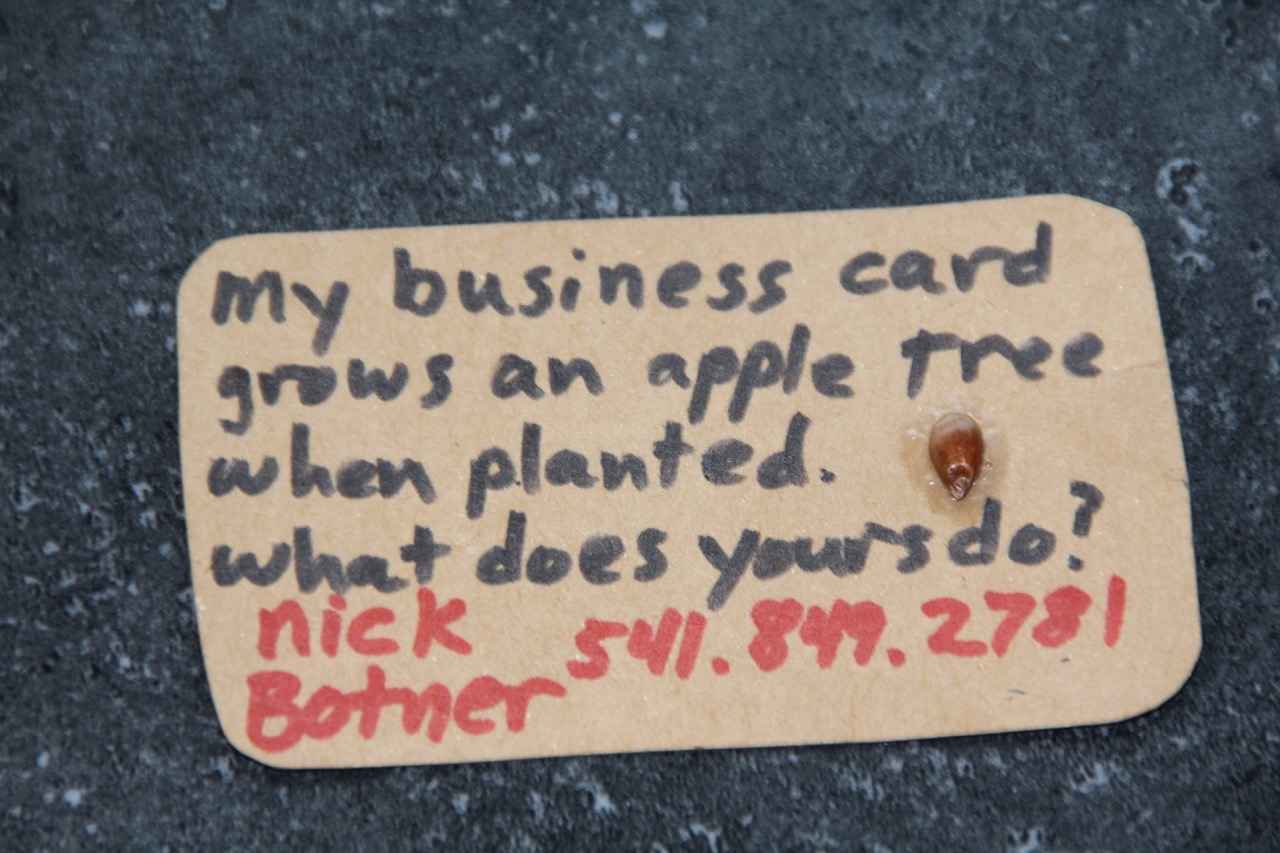 Below is the business card of the late Nick Botner, who grew over 4000 apple varieties in Yoncalla, Oregon and where many apple varieties were sourced. He was such an amazing character and a fearless collector of apple varieties. His varieties are being maintained at the Temporate Orchard Conservatory by Joannie Cooper and Shaun Shepherd in Molalla, Oregon.